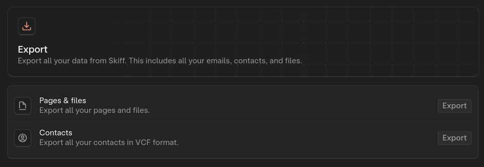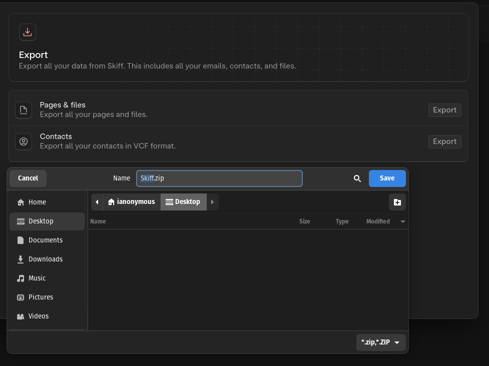 Pages and Files — this might take a few minutes depending on how many pages you have.Skiff.zip file at your preferred location.