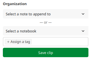 The web clipper provides a few options to help you clip exactly the part of the page you need: